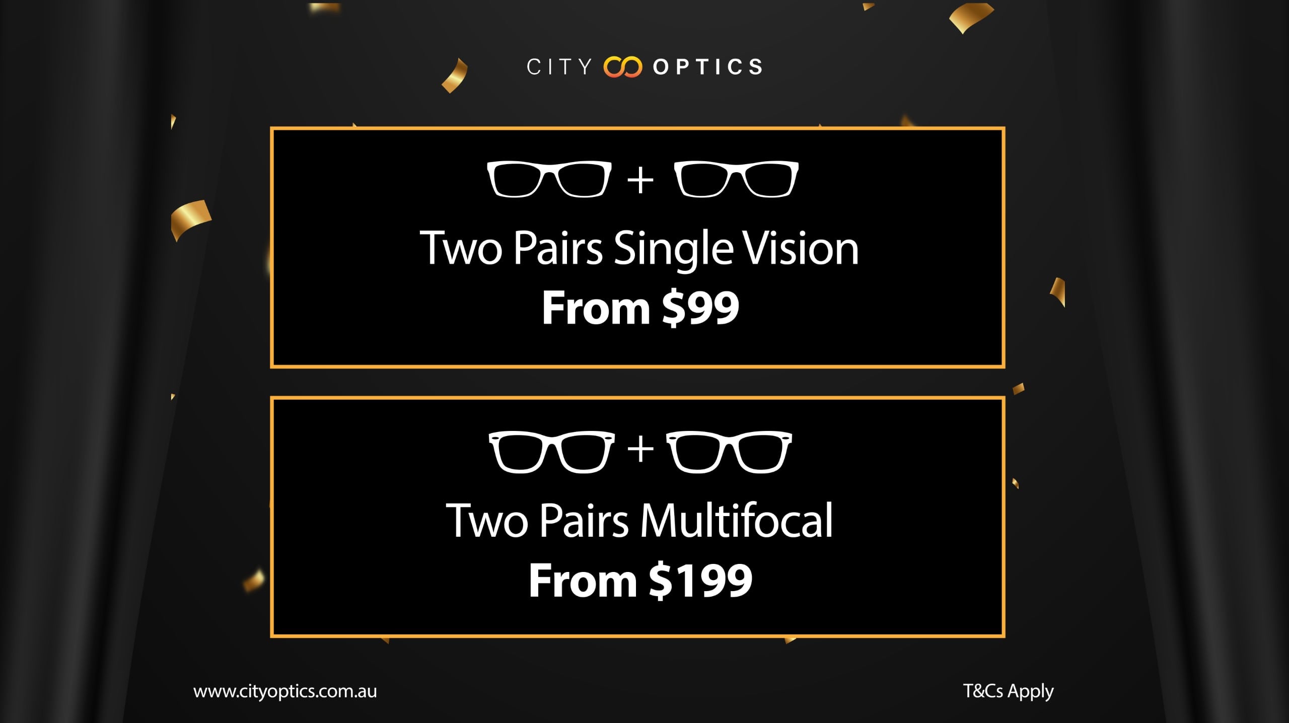 Book NowTwo pairs single vision from $99 OR two pairs multifocal from $199. Fill out the form below to secure the offer. Choose from 1,000+ frames, including brands like Bill Bass, Wayne Cooper, and Guess. T&Cs apply.